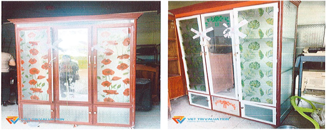 02 (hai) tủ để quần áo đã qua sử dụng, được làm bằng nhôm, chiều rộng 55cm, chiều dài 1m29, chiều cao 1m75, dạng tủ hai cánh khung được làm bằng nhôm mạ kẽm; mặt lưng phía sau lợp halu nhựa;